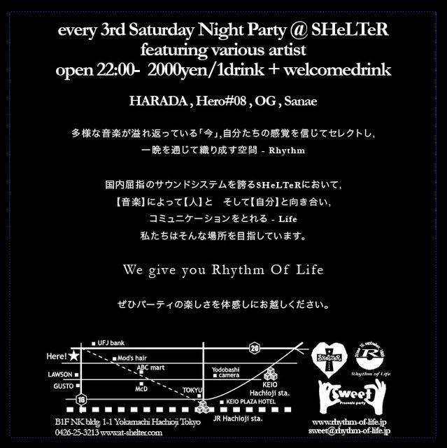 八王子の老舗クラブ、SHeLTeR(シェルター)にて毎月第三土曜日に開催しているパーティー、