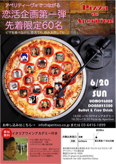 アペリティーヴォ恋活企画第一弾 PIZZA DE APERITIVOピザを食べながら、飲み友探し、恋活をしちゃう。ピッツアブッフェパーティ!!