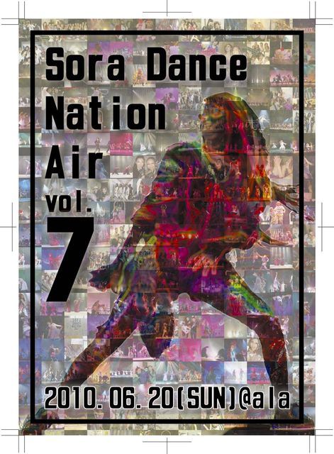 管理人様書き込み失礼します。 Dance Team Soraがお贈りする年に一度のスーパーエンターテイメントショー 2004年2月29日にvol.1を成功させ、vol.5・6では観客動員数1000人を突破しました!!! 年々規模を大きくし今年で7回目となるこのイベントもこの日で見納め!!!!???? 今回のテーマは『時間』 総勢約80人の出演者が創りだす時空を越えたステージをご堪能ください。 以下詳細 【Sora Dance Nation Air vol.7〜FINAL〜】 2010.6.20(SUN) @岐阜県可児市文化創造センター ala 主劇場 宇宙のホール 昼公演 open