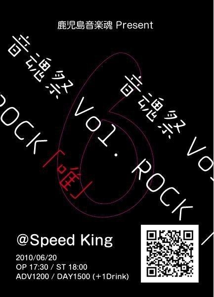 おかげさまでvol.6を 迎える事が出来ました★ 鹿児島音楽魂Present 音魂祭vol.6‐唯rock‐ 日時:2010.06.20(sun 場所:スピードキング ADV:\1200/DAY:\1500 (別途1Drink¥500) OP:17:30/ST:18:00 LIVE act… Misstion Bunny Strike 彩派〜iroha〜 FESSY H NUJY H2o↓ other act/DJ korotama(rocksite!) めぐ(オタのしみ会)