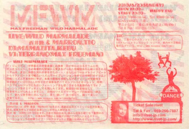 6/20(Sun) WILD MARMALADE JAPAN TOUR 2010 at MAX FREEMAN