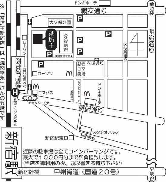 管理人様スペースお借りします。 6月22日にダーツ好きのダーツ好きによるダーツ好きのためのダーツ会をやります好評のため第四回目に突入しちゃいました毎回10名以上の参加を頂き本当にありがとうございます とにかくダーツが大好き!!そんな方達が交流する場です ※初心者大歓迎 お店 茶坊主 住所:東京都新宿区歌舞伎町2-45-7 石井ビル5F TEL:03-5809-3326 URL:http://www.chabozu.jp/shinjuku.html アクセス: 西武新宿駅北口から徒歩1分 新宿東口からアルタ、コマ劇場方面へ徒歩5