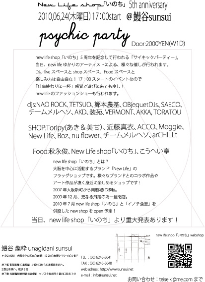 new life shop「いのち」5周年を記念して行われる「サイキックパーティー」。