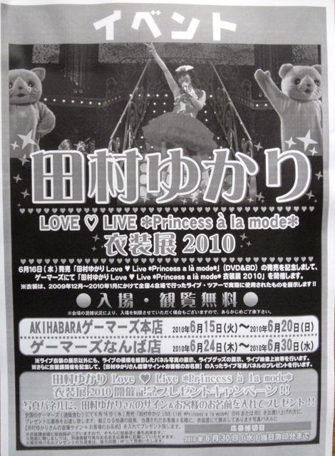 2010年6月16日(水)に発売される、田村ゆかりライブBD&DVD『田村ゆかり Love ♥ Live *Princess a la mode*』の発売を記念して、