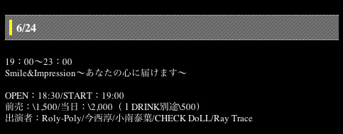 Ticket \1500 No drink(※別途1ドリンク代\500頂きます。)