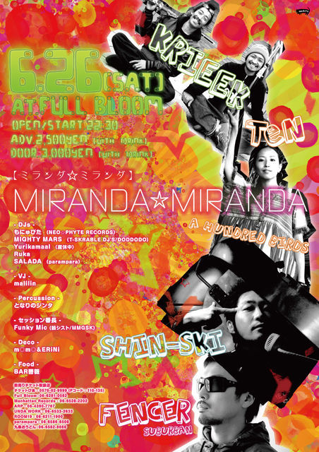 九条オンDANCEにお越しのお客様には当日の晩22:30から南船場Full Bloomにて開催の「MIRANDA☆MIRANDA」へのスペシヤルディスカウントチケットをプレゼント♪