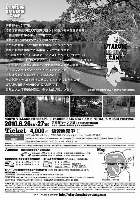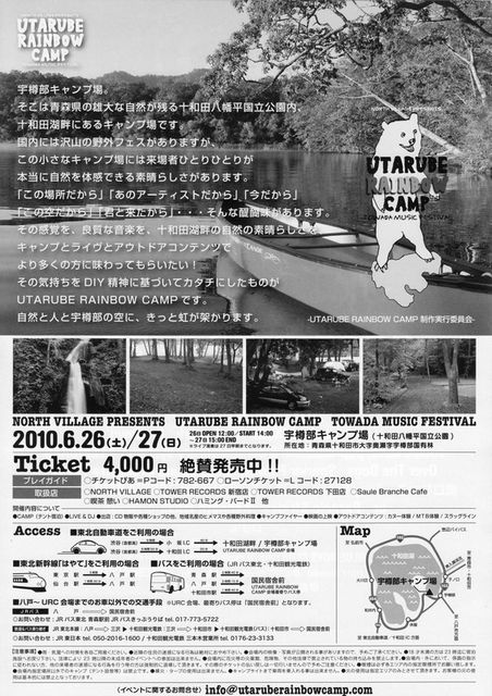 十和田八幡平国立公園の宇樽部キャンプ場にて、野外フェスが開催されます。