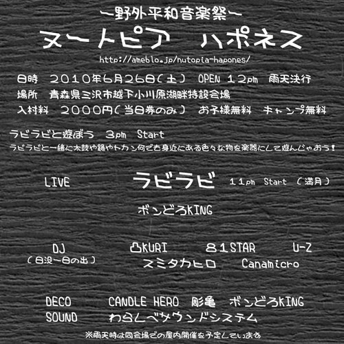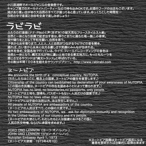 自然を体感しながら音楽を楽しめる素晴らしいイベントなので、地元の皆様、是非遊びにいらしてください!