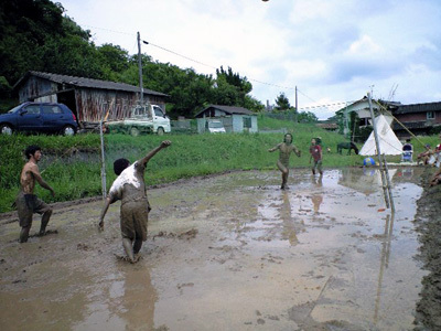 天草在郷美術館/天草LAND ART CLUB共催企画 天草のバカものあつまれ〜! 「田んバ2010in天草」 内容 田んぼでバレーボール、訳して「田んバ」。 代掻き後、田植え前の田んぼを使ってバレーボールをやります。 子供にかえって、泥にまみれて、ボールを追いかけます。 場所 天草在郷美術館(天草市佐伊津町)の横の田んぼ 日時 6月27日(土)10:00〜16:00 雨天決行 夕方より打ち上げ 参加費 大人500円 打上げ参加の方は別途1000円