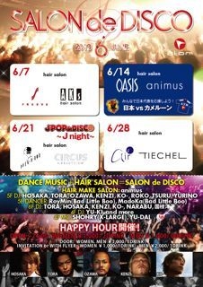 管理人様、告知失礼致します。 渋谷ATOM月曜おなじみ"SALON de DISCO" です! 通常料金よりも安く入って頂けるディスカウントゲストお取りしますので ご希望の方は、お名前とだいたいの人数をbanjoまでメッセージ下さい♪ メッセージ面倒な方は、 "バンジョのゲストのワイルド" って言ってもらえれば何人でもゲストで入場できます★ ご連絡お待ちしてます! 以下イベント詳細になります♪ 6月28日mon SALON de DISCO@渋谷atom OPEN: 21:00-5:00 6F J-POP 5F MIX TRANCE、HOUSE 4F HIP H