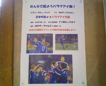 みんなでワールドカップで日本を応援しよー 今度、6月29日23時から ワールドカップ日本 対 パラグアイが行われます この日、井上サンにお願いして、22時から、1号室をお借りしました みんなでワールドカップを観戦しよう みんな集まれ〜〜