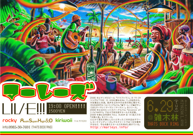 いよいよ本日、マーレーズLIVE in 綾! 超GOOD VIBESで九州ツアーを続けてたマーレーズがついに明日、九州ツアーファイナルライブ!!!!!!!!!!!!!!!!!!!!!!!!!!!!!!!!!!!!!!!!!!!!!!!!!!!!!!!!!!!!!!!!!!!!!!!!!!!!!!!!!!!!!!!!! 聞いたことない人も、聞いたことある人も、ライブをどーしてもまた体感したい人も、これが九州ツアーラストLIVE!!! 是非是非、生マーレーズを体感しましょー! 宮崎からは、謎のJAM軍団にDラップmixのASAHI-SUPER-HIGH!!!!!!!!!!!!!!!!!! 宮崎を代表するルーツロックバンド!キリワイ!!!!!!!!!!!!!!!!!!!!