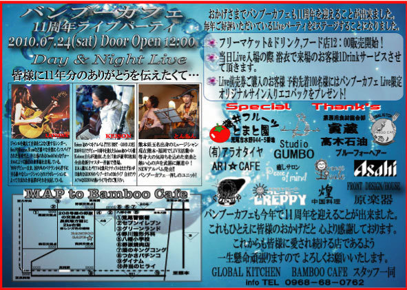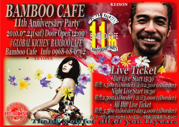 ´ÉÍý¿Í¤µ¤Þ ¥¤¥Ù¥ó¥È¤Î¹ðÃΤª´ê¤¤¤¤¤¿¤·¤Þ¤¹¡£ 2010ǯ¡¡7·î¡¡24Æü ¥Ð¥ó¥Ö¡¼¥«¥Õ¥§11¼þǯLIVE¥Ñ¡¼¥Æ¥£·èÄê!! ³§ÍͤΤª¤«¤²¤Ç¥Ð¥ó¥Ö¡¼¥«¥Õ¥§¤â11¼þǯ¤ò·Þ¤¨¤ë¤³¤È¤¬½ÐÍè¤Þ¤·¤¿¡£ ¤³¤ì¤â¤Ò¤È¤¨¤Ë³§ÍͤΤª¤«¤²¤È»×¤¤¤Þ¤¹¡£ Ķ³Ú¤·¤¤11¼þǯ¥é¥¤¥Ö¥¤¥Ù¥ó¥È¤ò·×²è¤·¤Æ¤ª¤ê¤Þ¤¹¡£ Âô»³¤Î³§¤µ¤Þ¤Î¤´ÍèŹ¤È¥¤¥Ù¥ó¥È¤Ë¤·¤¿¤¤¤È»×¤¤¤Þ¤¹¤Î¤Ç ¤ªÍ§Ã£¤ò¤ªÍ¶¤¤¤Î¾å¤´ÍèŹ¤ªÂÔ¤Á¤·¤Æ¤¤¤Þ¤¹¡£ Leyona Keison ¤È¤ó¤Á¤ó ÃëÌë2Live·èÄê!! OPEN¡¡¡¡12¡§00 START ¡õ Ticket Ãë¤ÎLive Day Live Start 15:30 Á°Çä 1,500 (1Dorder) ÅöÆü2