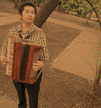アコーディオン奏者の田ノ岡三郎さん http://www.tanookasaburo.info/