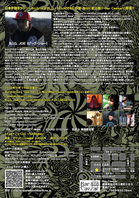 日本が誇るラッパー B.I.G. JOE が、DJ SEIJIとともについに四国松山に初上陸!!Caezarに登場!!