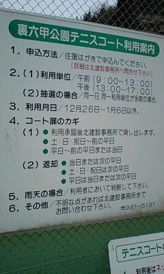 【サブタイトル】 珍しく週末家族サービス♪ でもちょっとだけテニスもしたいのッ!(笑) 【日時】 7/3(土) 10時集合 解散は各自自由 【場所】 裏六甲テニスコート(クレー1面) http://www.mapion.co.jp/here/all/100618/mapi0322700100618234043.html 【詳細地図版】 http://www.mapion.co.jp/here/all/100618/mapi0322657100618234326.html 【コート利用料】 午前午後借り切り 無料Σ( ゚Д゚) スッ、スゲー!! 【ボール】 taka-takaで用意します 【対象クラス】 ALL 【募集人数】 来れるだけ(定員なし)