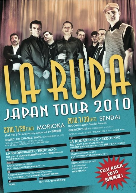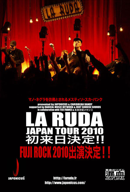 1993年の結成以来、ストリートのライヴハウスから世界の大型野外フェス、フランス有数のコンサートホールまで、精力的に活動の範囲を広げているフランスのSWING SKAバンドLA RUDA(ラ・ルーダ)の待望の日本上陸がついに決定した。これまでに6枚のアルバムと、2枚のライヴ盤をリリースし、ヨーロッパで10万枚を超えるヒットを飛ばした。その中でも比較的最近リリースされた『Grand Soir』(2009)等の音源の素晴らしさには