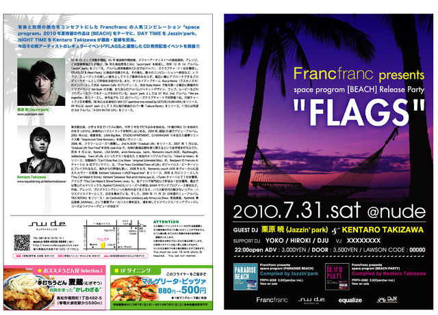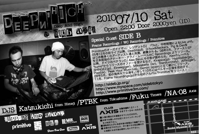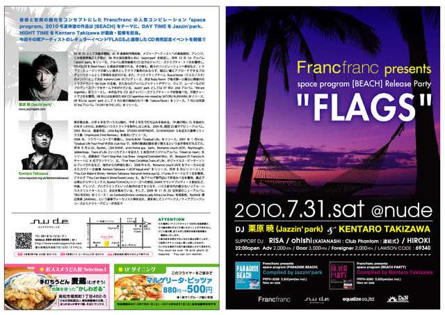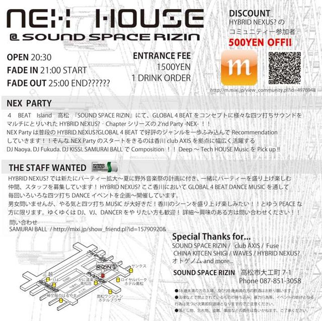 今回、DJ陣は西ではおなじみの bo_bo、Party 7の Higaki Atsushi & KIM の3人に、高松から YO-KO (漣音レコード) & DJ 狂犬 (RAD)が参戦決定!