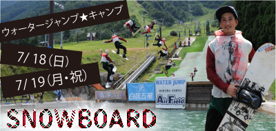 対象◆ウォータージャンプ未経験・中級者◆ (2クラス有) オフシーズンの鈍ってしまったスノーボード技術を一泊二日の ウォータージャンプキャンプで復活&進化させましょう ウォータジャンプ初級者〜中級者でクラスをわけ 少人数制なのでワイワイ楽しみましょう♪ このキャンプの新しい挑戦 ビデオクリニックを行いビデオプレゼント 自分だけのカルテを作成 基本姿勢のチェックしたことありますか? 実は基本姿勢は上級者やプロ選手も念入りに訓練してるんです。