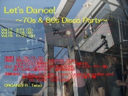 ¥¿¥±¥Ñ¥é¤¬½ª¤ï¤Ã¤¿¤¢¤È¤Ï¤³¤Î¥¤¥Ù¥ó¥È¤Ç¤¹¢ ǯ¤Ë3²ó¤ÎÃë´Ö³«ºÅ¤Î¥¤¥Ù¥ó¥È¡Ö²Æ¤ÎÉô¡×7/18³«ºÅ¤Ç¤¹Ž¡Ž¥Ž¡Ž¥Žß¡úޥޡޥޡ¡ùŽ¥ŽßޥޡޥŽß ¡Ú¥¤¥Ù¥ó¥È̾¡ÛLET¡ÇS DANCE¡ª Vol.18¡¡¡Á70s¡õ80s Dance Party¡Á ¡¡ ¡ÚÆü»þ¡Û7·î18Æü¡ÊÆü¡Ë ¡Ú»þ´Ö¡Û13¡§00-19¡§00 ¡ÚÎÁ¶â¡ÛÃËÀ2500¡Ê2DÉÕ¡Ë/½÷À2000¡Ê2DÉÕ¡Ë ¡¡¡¡¡¡¡¡*¤ª»Ò¤µ¤ó¤ÏÆþ¾ì̵ÎÁ¤Ç¥Õ¥ê¡¼¥É¥ê¥ó¥¯¡¦¤ª²Û»ÒÉÕ ¡ÚDJ¡Û¾¾ËܤߤĤ°¡Ê¸µNEWYORK NEWYORK¡¦¥Á¥§¥¹¥¿¡¼¥Ð¥ê¡¼Â¾¡Ë ¡¡¡¡¡¡JIN¡Ê¸µÅì°¡²ñ´ÛGREECE¡¦º¬´ß¶æ³ÚÉô¾¡Ë ¡Ú¥¸¥ã¥ó¥ë¡Û70ǯÂå¡Á80ǯÂå¤Î¥½¥¦¥ë¡¦¥Õ¥¡¥ó¥¯¡¦¥Ç¥£¥¹