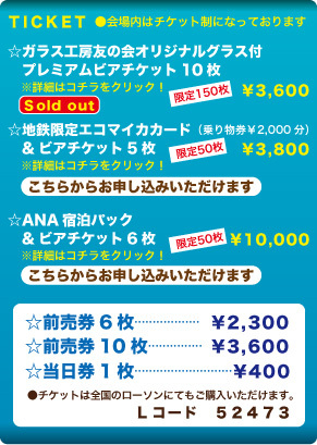 参加醸造所(ブルワリー)がなんと!! 17社★ 全国の選りすぐりの美味しい地ビールが勢揃い! 城端麦酒(富山) オオヤブラッスリー(富山) いきいき地ビール(富山) 日本海倶楽部(石川) 富士桜高原麦酒(山梨) 箕面ビール(大阪) 越前福井ビール(福井) 伊勢角屋麦酒(三重) 飛騨高山麦酒(岐阜) 新潟麦酒(新潟) サンクトガーレン(神奈川) 大山Gビール(鳥取) 金しゃち(愛知) ハーベストムーン(千葉) モクモクビール(三重) 志賀高原ビール(長野) 松江地ビールビアへるん(島根) <順不同> ってこと