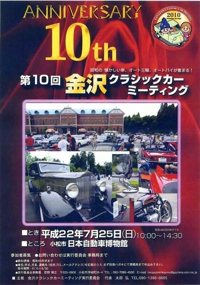 梅雨明けに小松の日本自動車博物館でクラシックカーのイベントが開かれます。 なので、ツーリングがてら見学してきたいと考えてま〜す。 興味のある人いませんか〜? http://mmj-car.com/event/meeting%20kanazawa2009.html 参加したい人待ってまーす!!