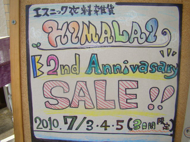 みなさんこんにちは!56です 早いもので、来月の5日でHIMALAIは2周年をむかえます! これもお客様ひとりひとりに支えられているおかげだと改めて感じます そんな日頃の感謝の気持ちを込めて 7月3〜5日の3日間限定で【2nd Anniversary SALE】を開催します ◆店内商品 20%OFF〜 ※一部商品は除きます※ ◇SALE期間中にお買い上げいただいたお客様全員に! “メヘンディ”の体験無料券をプレゼントします この券は、当日からすぐにご利用いただけますが…