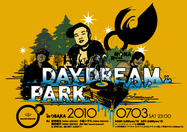 毎月東京三宿webで10年続くノーナ・リーヴス主催のレギュラー・イヴェント「デイドリーム・パーク」が大阪へ初遠征。西寺郷