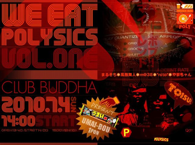管理人様告知失礼いたします。 トイス!!!!!!! 伝説の武道館ライブからもう一ヶ月! そろそろ繋ぎとバイザーのアイツラが恋しくなった時期じゃないかい? カヨ様、ありがとう&お疲れ様! 笑顔でお別れしても、やっぱりあの4人の POLYSICSを俺達は忘れない!! ここ、日本の中心名古屋で、POLYSICSをメインに据えたDJパーティを開催します! ツナギ、POLYSICSTシャツでの参加も もちろん大歓迎! 熱気がクラブからはみ出ちゃうくらいみんな、歌って踊ってよろしくねー!!! 尚DJイベント終了後に、飲み会も予定