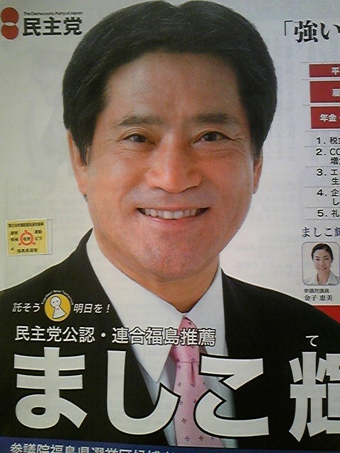 「託そう明日を!!」 民主党:ましこ輝彦個人演説会 中小企業の救世主 危機の時代を乗り切る突破力! チャレンジ60!ー政権継続ー 「強い経済.財政.社会保障」実現! 「生活しやすい国」づくり 大人になって少しづつ政治や社会について、 考える歳になってきました。 是非若い世代の方の参加をお待ちしてます。 みんなで行きましょう!!! 日時:7月5日(月)19時から 場所:パレスいわや いわき市鹿島町久保梅田4-1 tel:0246-58-5555