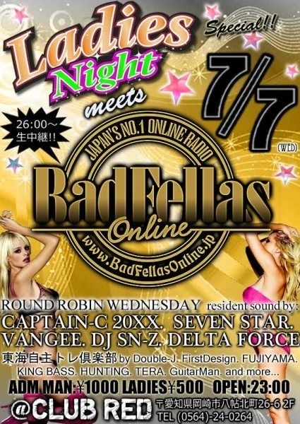 7/7(Wed) Ladies Night meets Badfellas Online Special
