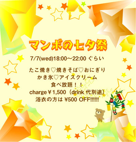 今回は七夕スペシャル。DJ も初夏の夜を彩るelectricでhappyな
