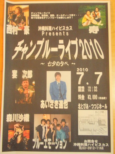やっちゃいます ハイビスカスpresents チャンプルーライブ2010 を な・ な・ な〜んと地元の 大イベントスペース 北とぴあ で開催 凄いねぇ 太っ腹 だね (その通り だった。) マスター ママが この日の為に 痩せる思いで 企画を 練ってます。 みんなで 応援に行きましょう みんなで 盛り上げましょう イベント前には コミュ で 決起大会 やりたいね。 チャンプルーライブ2010 〜七夕の夕べ