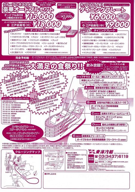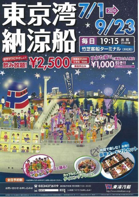 こんにちは! 元気ですかーっ!? いよいよ7月に入り2010年も折り返し地点ですね! 下半期最初の行事と言えば七夕ですが、今年の七夕はちょっとロマンチックに?東京湾の豪華客船の上から星に願いを・・・☆ なんていかがですか?? 浴衣着用での乗船なら乗船代金と飲み放題込みで1500円の破格値で参加できますよ! 勿論普段着でも乗船代金と飲み放題込みで2500円です! 詳しくはこちらをどうぞ! PCから・・・ http://www.tokaikisen.co.jp/event/noryo2010/ (このページの上にある画像もクリックして