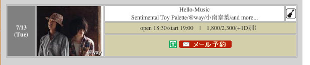 open 18:30/start 19:00 | 1,800/2,300(+1D別)