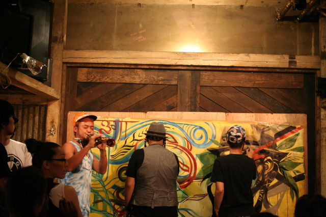 管理人様告知失礼します。 7/14(水)と7/21(水)の横浜GrassRootsで行われるLivePaintingの紹介をします。 7/14(水)と7/21(水)のLivePaintingの紹介をします。 5月からスタートした、横浜GrassRootsでの月イチDragon76LivePainting!今月は7/14(水曜日)となります。 写真一枚目は前回6/15サンフランシスコからのペインターdeejae とのコラボLivePaintingの様子。 二枚目は6/15日の店内の様子。 皆さんお食事や会話をして絵が出来上がる様子を楽しんでいます★ (二枚の写真はDragon76のブログから引用) DJにSAMATA&Okaichiが