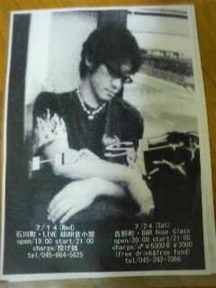 イエ〜イd=(^o^)=b ウルフガイHASEが暑い夏に向かって吠える HASEからのメッセージだぁ… 『今年も暑い夏になりそうだなでも、まだまだ夏には早えーんだよ梅雨だからってひきこもってんじゃねーよもっともっと熱いオレのRock'n Rollでもどうだいガンガン飲んで騒いで楽しもうぜ』 って伝えてくれマネージャー(原文メールのまま) 7.14(水) 石川町【音小屋】 open/19:00 start/20:00 charge/投げ銭 tel/04