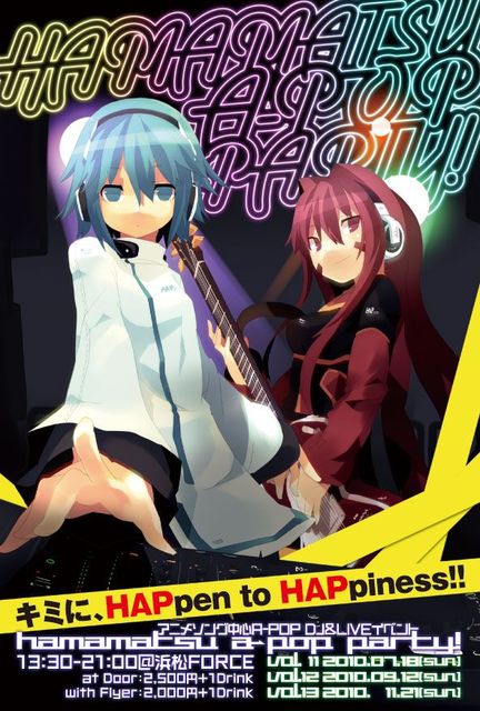 今回よりメンドイ前売り制度は撤廃! すべてフライヤー割引制度となります! もちろんmixi申請者はそれだけでフライヤー割引OK! ただ、会場内の状態によっては、入場規制を掛ける場合がありますので ご注意ください! 今回から、iFlyerのサイトを利用した、フライヤー割引を導入することにしました! iFlyer - HAMAMATSU A-POP PARTY! Vol.11 http://iflyer.tv/event/62929 こちらにある、クーポンを入場時にお見せいただけても、 フライヤー割引となります! ご利用ください! ---- HAMAMATSU A-POP PARTY! Vol.11 2010年7月
