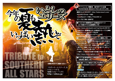 沢山の参加表明有難うございます。 リクエストの方は、これにて受付終了致しますが、 LIVE参加への受付はまだまだ行っております! どしどしお待ちしております!! 9月17日、告知の通り、KAWAMURA BANDの大阪公演がございますが・・・ それに先立ちまして、E★SPOTにてナイトプロモーションを敢行します! この日は、河村さんピンでございますが、いつものようにまったりと騒ぐだけじゃなく、折角だから9月のライブに向けての景気づけも含め、皆様からのリクエストを受け付けます! サザンのあの曲を歌って欲