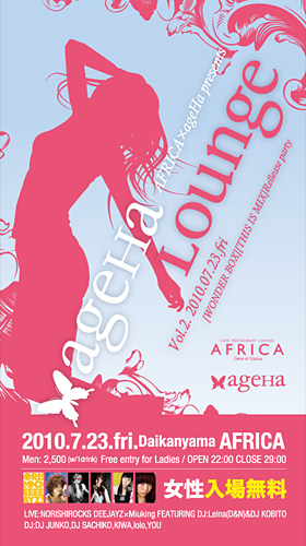 HAPPY HOUR 21:00〜23:00(MEN¥1000/2d WOMEN ENTRANCE FREE)
