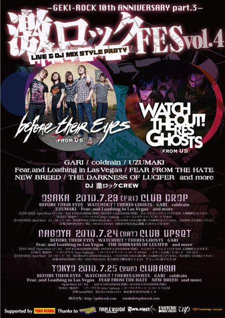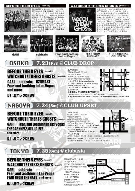 BEFORE THEIR EYES、WATCHOUT! THERES GHOSTSを、GARI、coldrain、UZUMAKI、Fear, and Loathing in Las Vegas、FEAR FROM THE HATEといった国内のラウドロック・シーンを牽引するバンドたちが迎え撃つ!!