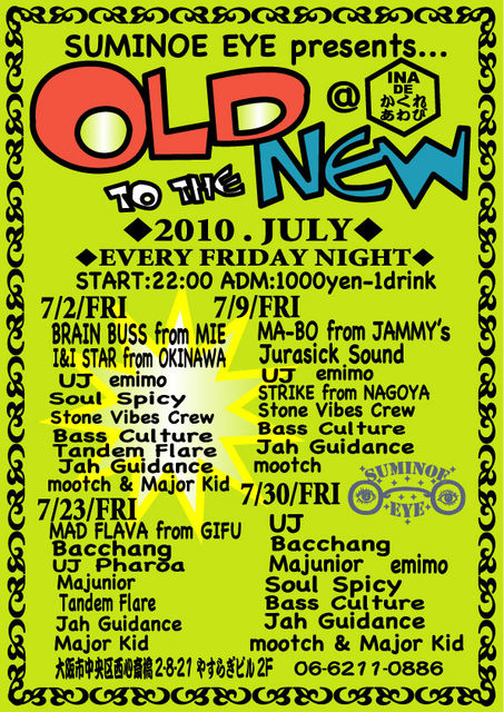 名前の通り古いのから新しいのまでレゲエはもちろん、SoulやR&Bまでジャンル、年代にとらわれずジャマイカフレーバーな選曲のレギュラーダンス!!