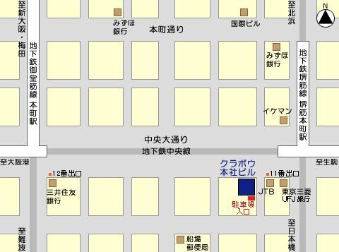 の間、船場センタービル5号館前のクラボウビル前あたりです。