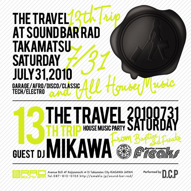 今回、DJ陣は西ではおなじみの bo_bo、Party 7の Higaki Atsushi & KIM の3人に、高松から YO-KO (漣音レコード) & DJ 狂犬 (RAD)が参戦決定!