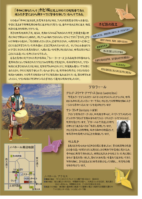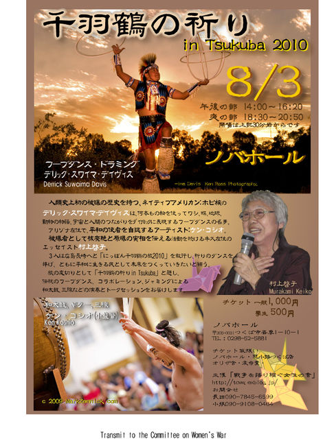 午後の部 14:00〜16:20 夜の部 18:30〜20:50 チケット 前売 一般 1,000円 当日 一般 1,500円 前売 障害者/学生 500円 当日 障害者/学生 700円 高校生以下 無料 場所:ノバホール (電話:090-7845-6599) 〒305-0031 つくば市吾妻1−10−1 チケット取り扱い ノバホール/オリザ舎/友多堂/ともいき舎 主催:「戦争を語り継ぐ女性の会」 http://www.toww.exblog.jp/ お問い合わせ 長田:090-7845-6599 小張:090-9108-0465 2010年夏。米国の被爆の民と、広島の被爆者が、ともに列島を歩く。