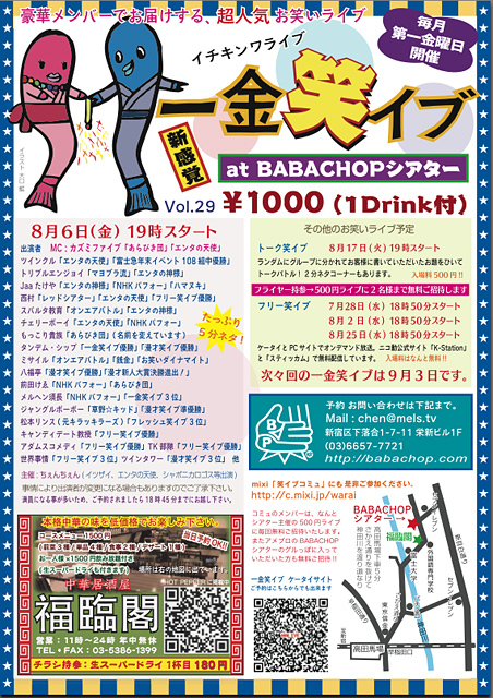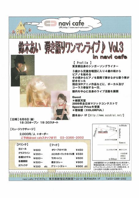 ◇料金:前売2,000円/当日2,500円(別途1D)
