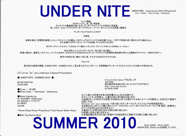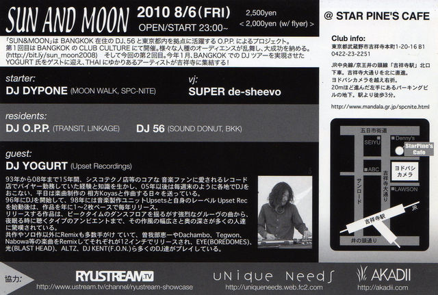 2010年08月06日 (OPEN 22:00 CHARGE 3,000YEN/1D at door, 2,000yen/1 with flyer)