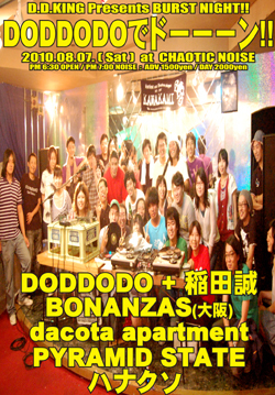 今週末一本目8月7日(土)は異端ブレイクコアガール"DODDODO"がPAAP、BRAZIL、SUSPIRIAなどで活躍を続けるコントラバス奏者"稲田誠"との異色ユニットで来高!! 更に稲田氏とはSUSPIRIAで活動をともにする吉田ヤスシ在籍のNO WAVEな鮮烈凶悪ダンスミュージックプロジェクト"bonanzas"も同時来高!! 関西アンダーグラウンド界の異端児達によるこの日限りの狂演を見逃すな!! 詳細はこちら↓ ● 08月07日(土) [ "DODDODO"でドーーン!! ] PM 6:30 OPEN / PM 7:00 NOISE : ADV 1500円 / DAY 2000円 Feat : DODDODO + 稲田誠 / BONANZAS(大阪) / dacot