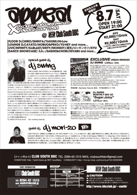 「APPEAL」×「EXCLUSIVE URBAN REMIXES RELEASE TOUR 2010」