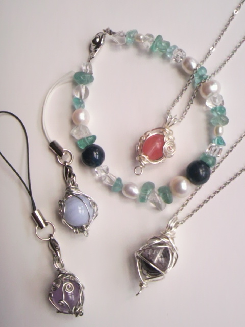 簡単に作れる天然石アクセサリーのワークショップを開催いたします(^^)/ 08/08(sun) am11:30〜pm14:00 天然石のワイヤーワークネックレス(orストラップ)×二個 講習料:1000円(材料費込) 08/29(sun) am11:30〜pm14:00 天然石のワイヤーブレスレット 講習料:1200円(材料費込) ■ワークショップ詳細 日時/内容:上記参照 開催場所:アークカフェ 千葉県市川市堀之内3-17-24アークタウン内 北総線北国分駅よりすぐ アーティスティックワイヤーやナイロンコートワイヤーを使って 天然石のアクセサリー